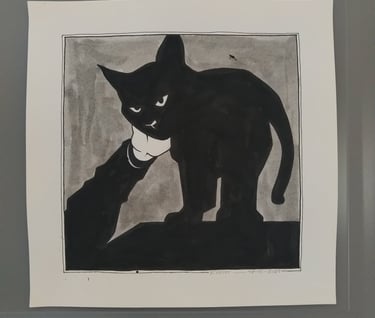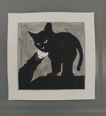 Ik vond het heel leuk om deze serie te maken. Vooral het bedenkproces vond ik leuk, want dat ultra precieze en strakke werken vond ik bij deze werkjes wat te veel. Ook vond ik het lastig dat de werken zo smetteloos moesten zijn. Want elk minuscuul vlekje springt enorm in het oog en wat komen er in mijn studio veel vlekjes uit het niets tevoorschijn zeg! Ik ben daardoor wel overzichtelijker en schoner gaan werken. Wat ik vooral gaaf vind is dat ik nu weet hoe het is om iets af te maken. Na al dat oefenen in schetsboeken geeft dit een enorm goed gevoel. Het zijn 16 werkjes geworden die je zo aan de muur kan hangen, helemaal puntgaaf afgewerkt. Nu op naar wat losser werk!
