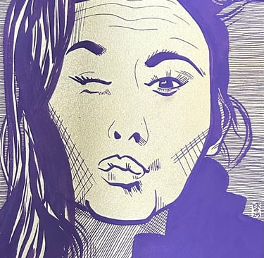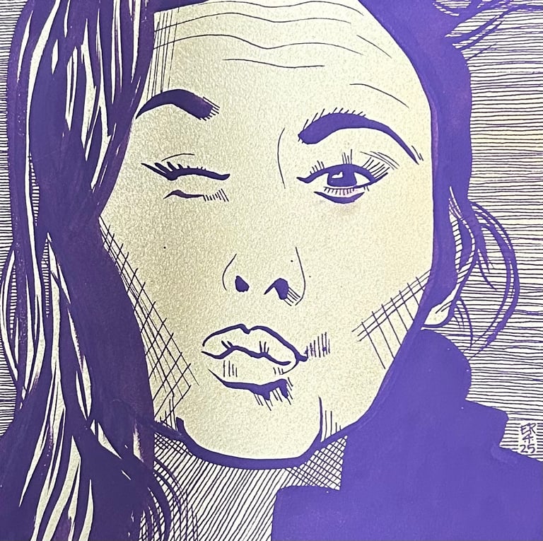 Zonder eerst een schets te maken, meteen met inkt gemaakt portret. Aan de hand van een selfie die mijn lieve vrouw me stuurde. Het maken van portretten op deze manier vergt behoorlijk concentratie. Ook vergt het vertrouwen en overgave. Mooie oefening dit.