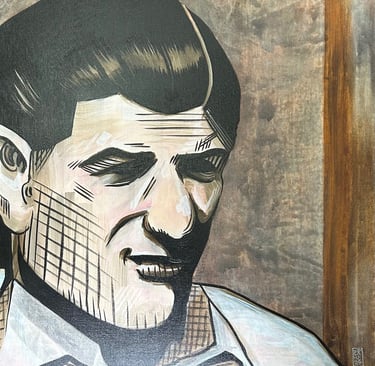 Extra dik canvas, 50x50x4cm, acrylverf en inkt.