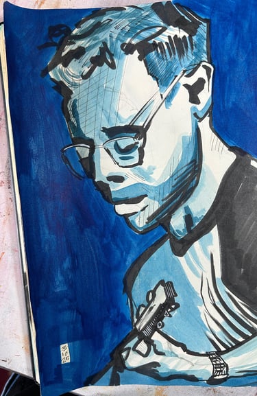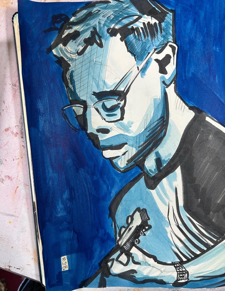 Dit weekend ben ik naar de Wodan Boys geweest. Te gekke band die in PAARD de hele zaal op stelten zette. De energie die er van zo’n rockband af spat! Geweldig! Muziek maken is een kunstvorm. Daarbij is het schrijven van een nummer een heel andere creatieve uiting als het spelen van datzelfde nummer voor een publiek. Ik merk dat een schilderij maken op zo’n spontane en snelle manier een heel andere ervaring en resultaat geeft als langzaam en bedachtzaam schilderen. En ik vind het echt een verrijking. Dit schilderij maakte ik binnen het half uur met inkt in mijn schetsboek.